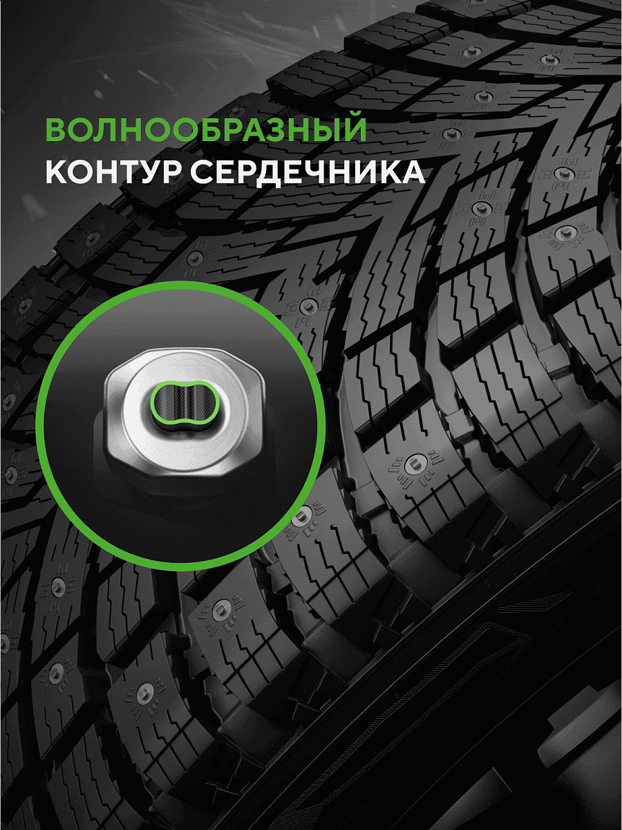 Прочная и надежная двойная ошиповка DoubleBite в сочетании с инновационной формой сердечника обеспечивают надежное сцепление как при разгоне и торможении, так и в поворотах на льду и снегу. Усиленная фиксация шипов значительно продлевает период эксплуатации шин. Качественные материалы повышают износостойкость шины и сохраняют надежное сцепление даже в суровых зимних условиях.